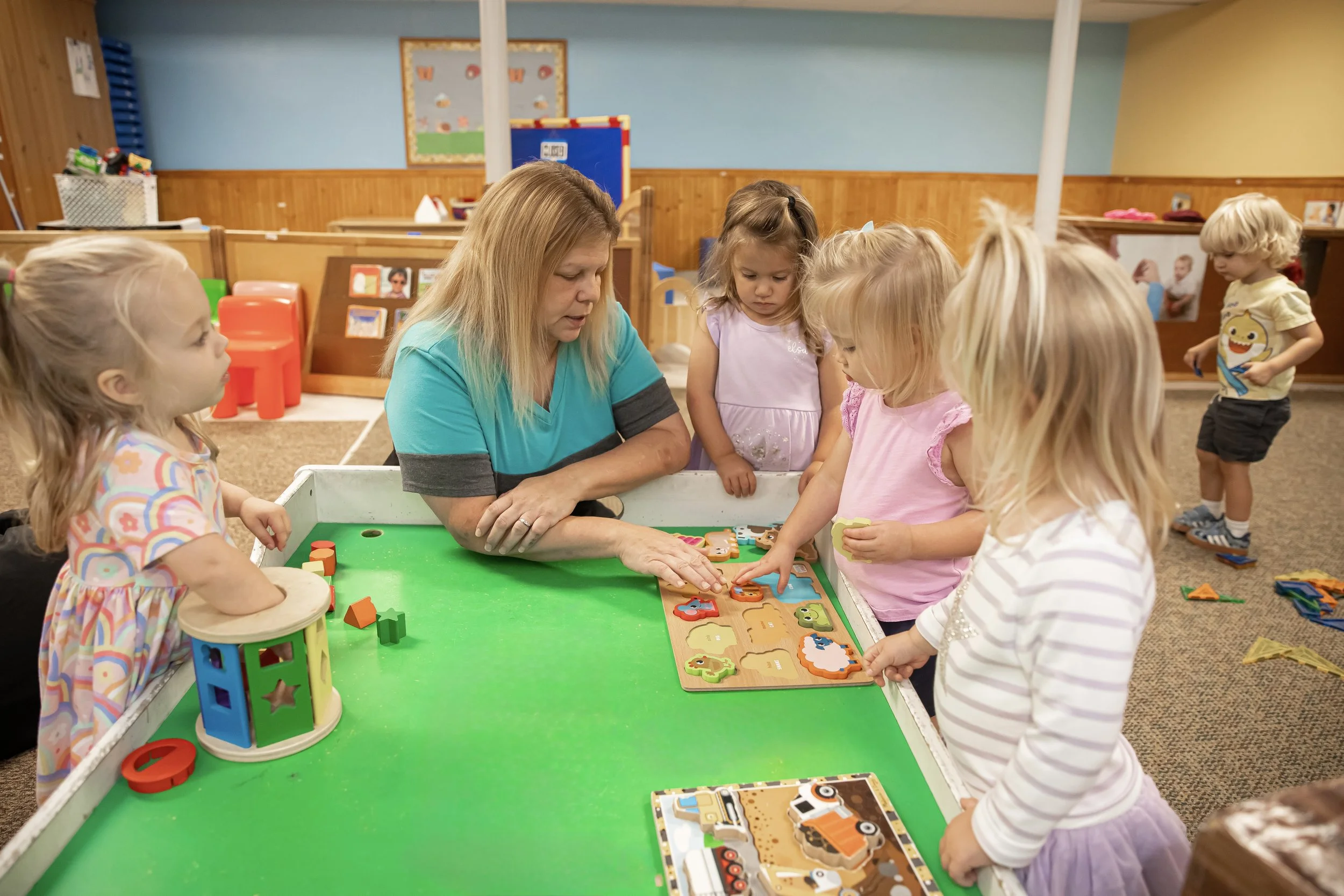The Little Apple toddler classroom is a nurturing community where consistency, curiosity, and kindness guide each day. Through thoughtfully designed routines and round-table social settings, children learn to care for themselves and others